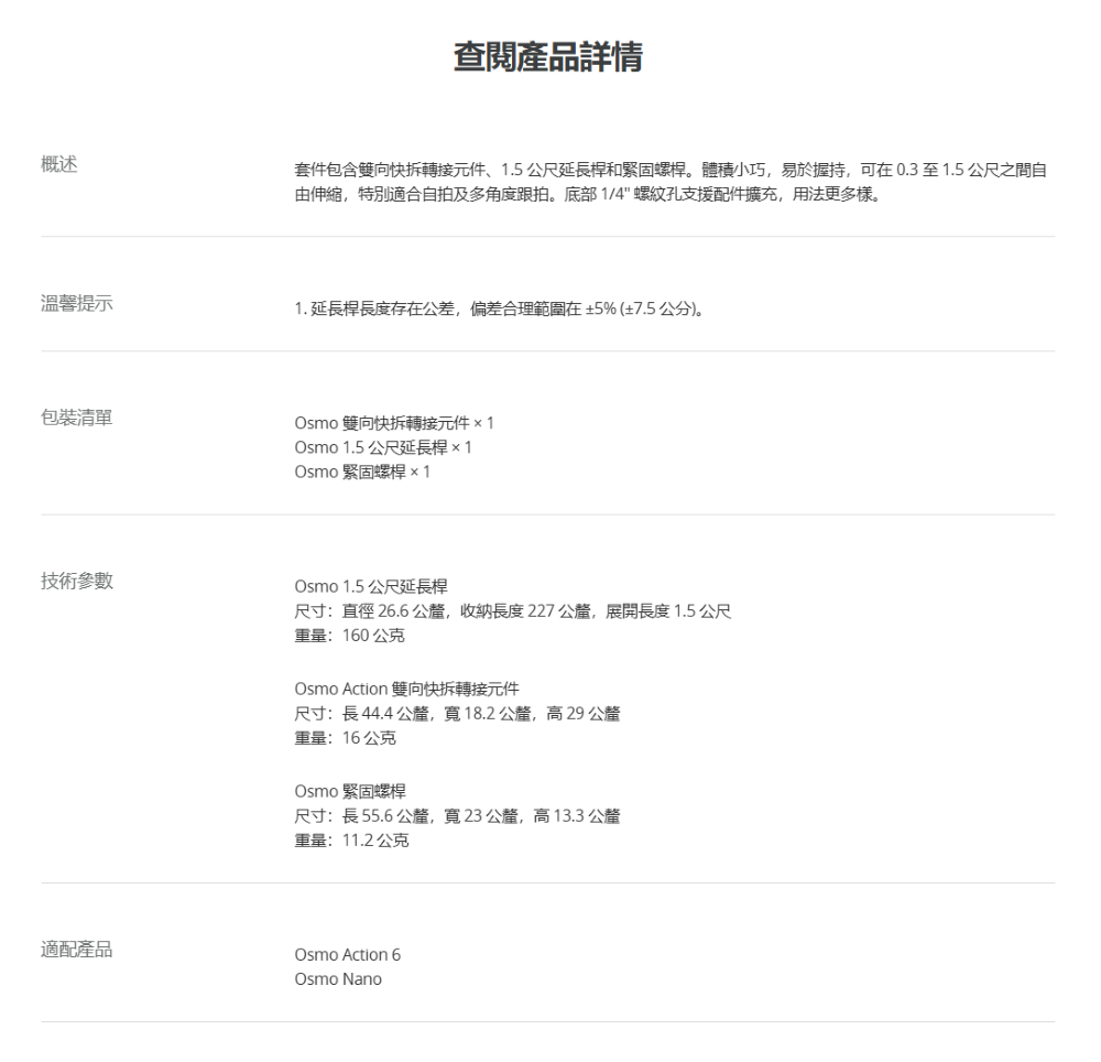 ▶體積小巧,易於握持,可在 0.3 至 1.5 公尺之間自由伸縮,特別適合自拍及多角度跟拍