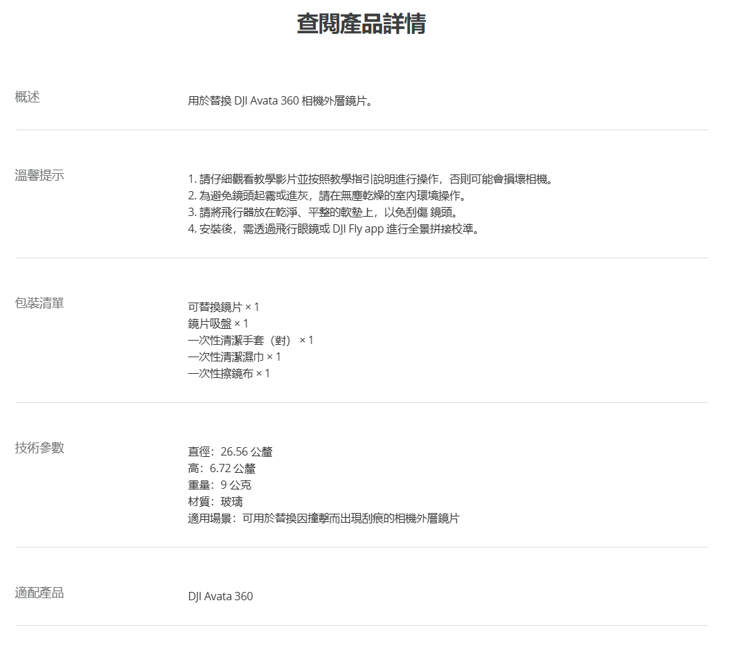 ▶用於替換 DJI Avata 360 相機外層鏡片