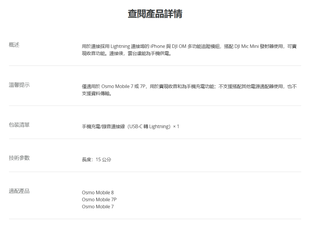 ▶用於連接採用 Lightning 連接埠的 iPhone 與 DJI OM 多功能追蹤模組,搭配 DJI Mic Mini 發射器使用,可實現收音功能