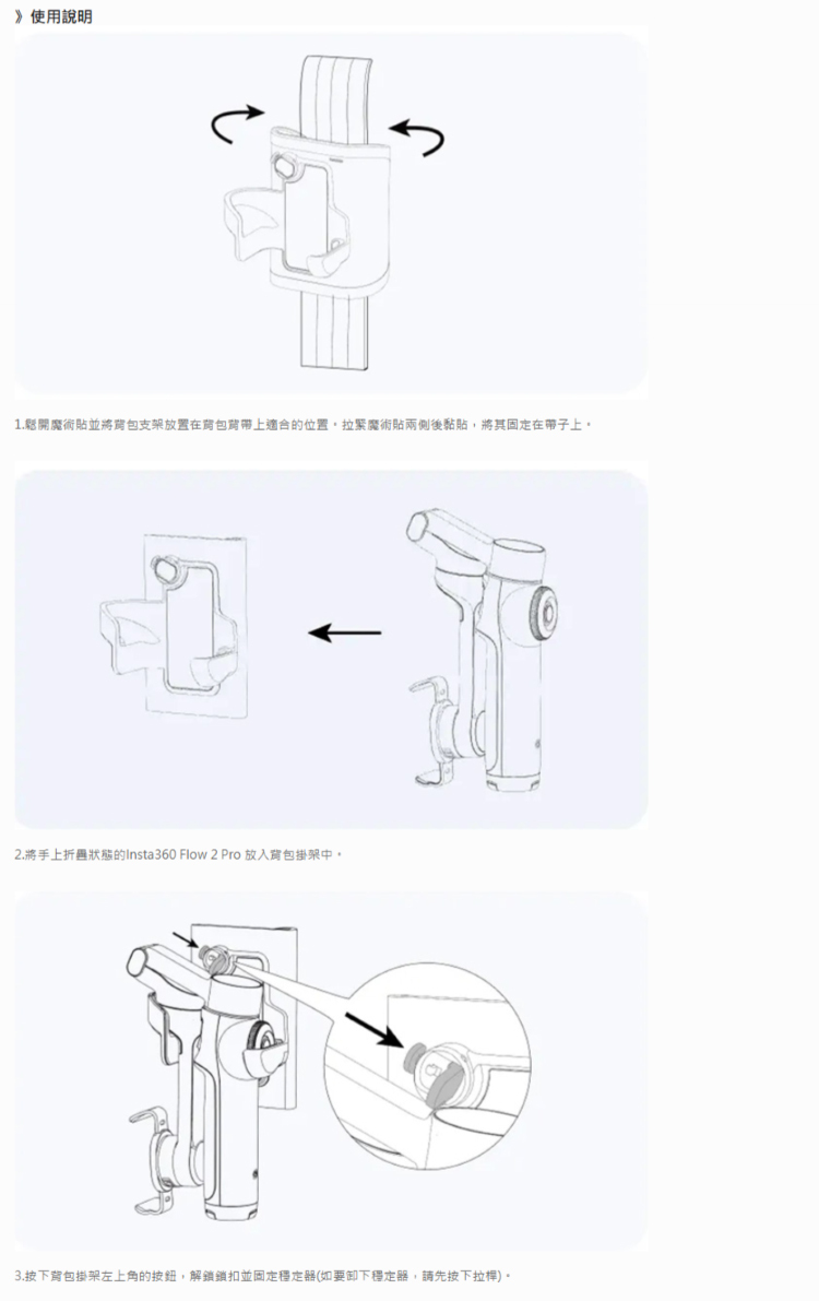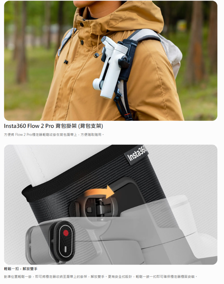 ▶品名:Insta360 Flow 2 Pro / Flow 2背包支架 原廠公司貨