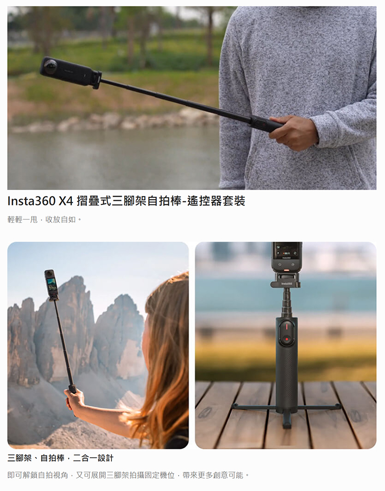 ▶品名:Insta360 折疊式三腳架自拍棒(1/4 " 螺口)