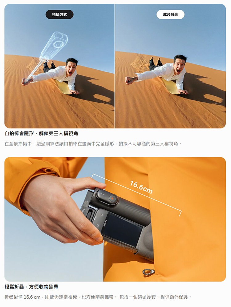 .在360度全景拍攝中,透過演算法讓自拍棒在畫面中完全隱形。