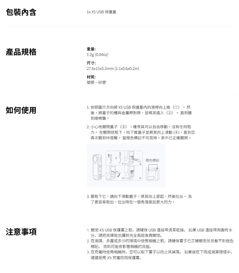 ▶品名:Insta360 X5 USB保護蓋 原廠公司貨