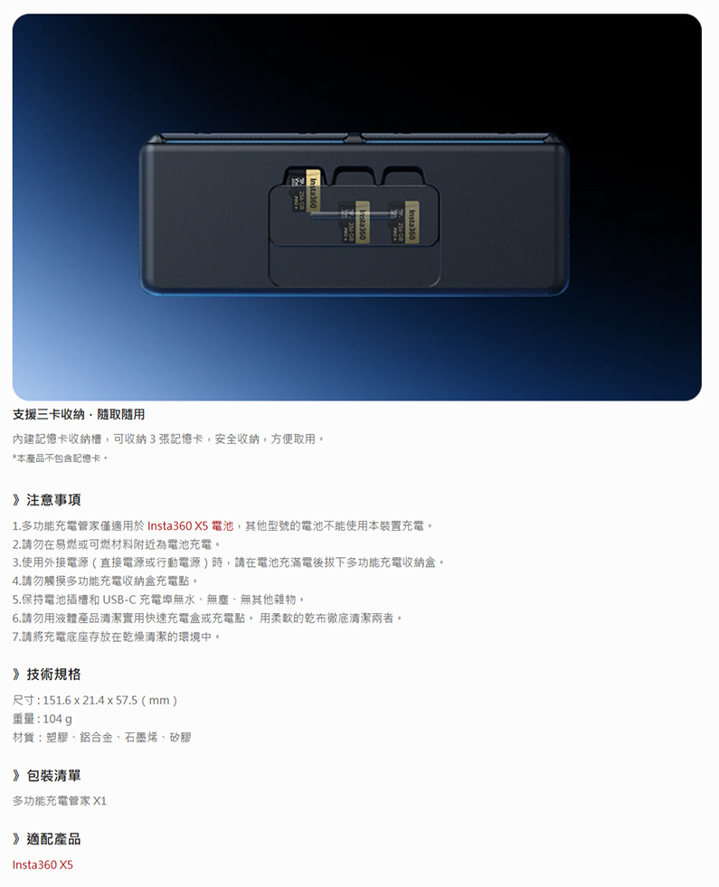 ▶品名:Insta360 X5 多功能充電收納盒 原廠公司貨