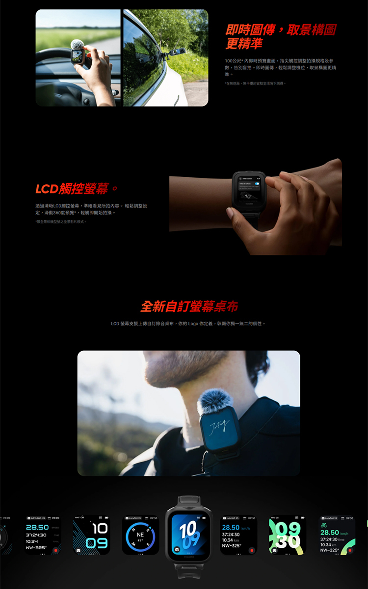 .一體化遙控器,簡化創意工作流程。 支援Insta360 Ace Pro 2或X5,實現即時影像預覽、遠端遙控、拍攝及即時數據。