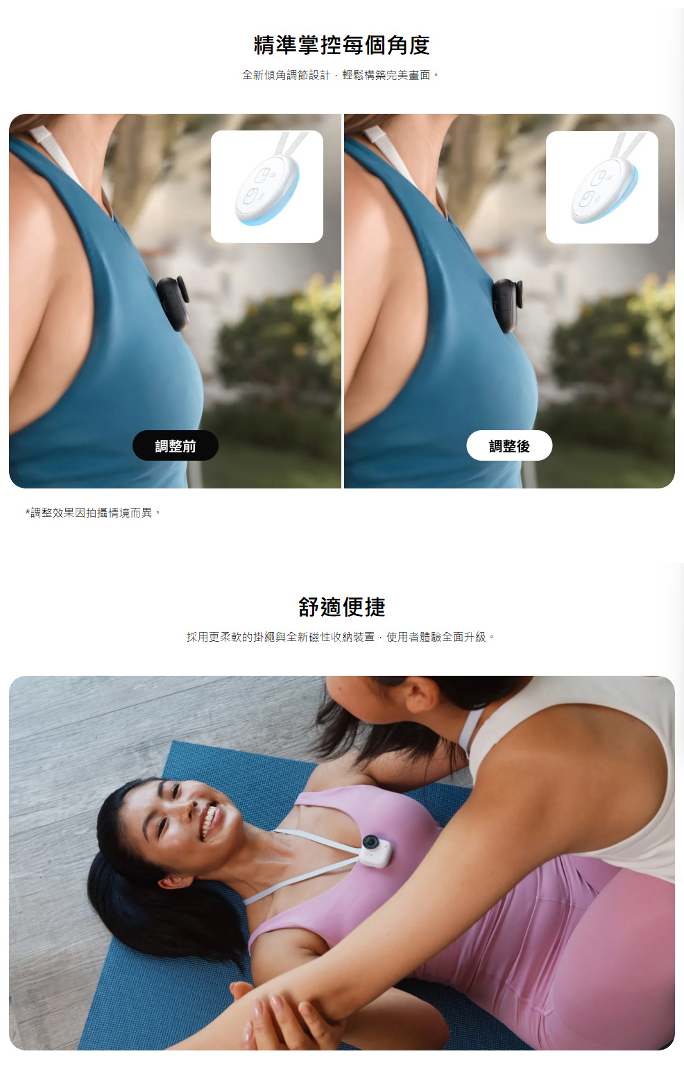 ▶透過磁力將 GO Ultra 獨立相機吸附於胸前,輕鬆捕捉第一人稱視角