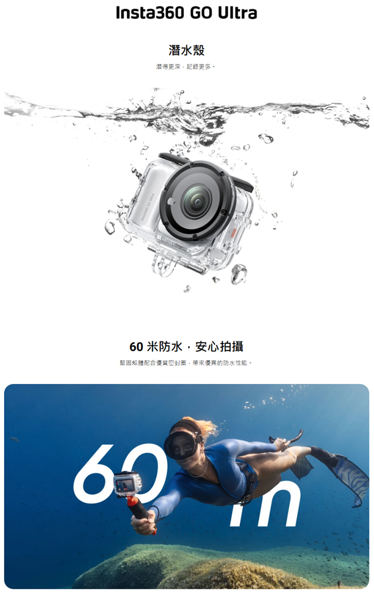 ▶為 GO Ultra 提供高達 197 英尺(60 米)的防水保護