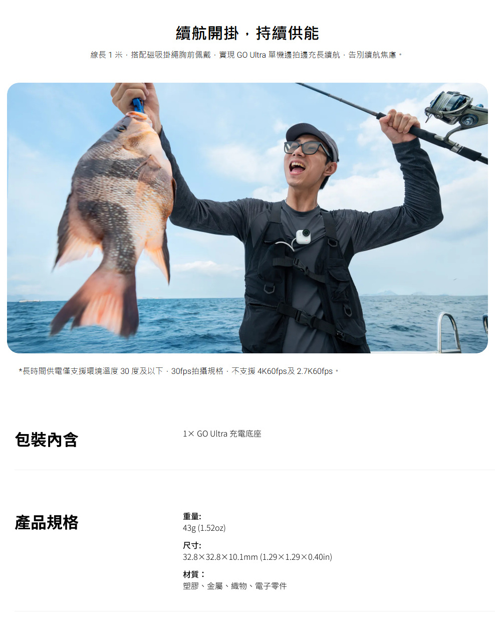 ▶只需 12 分鐘即可將 Insta360 GO Ultra 獨立相機充電至 80%。