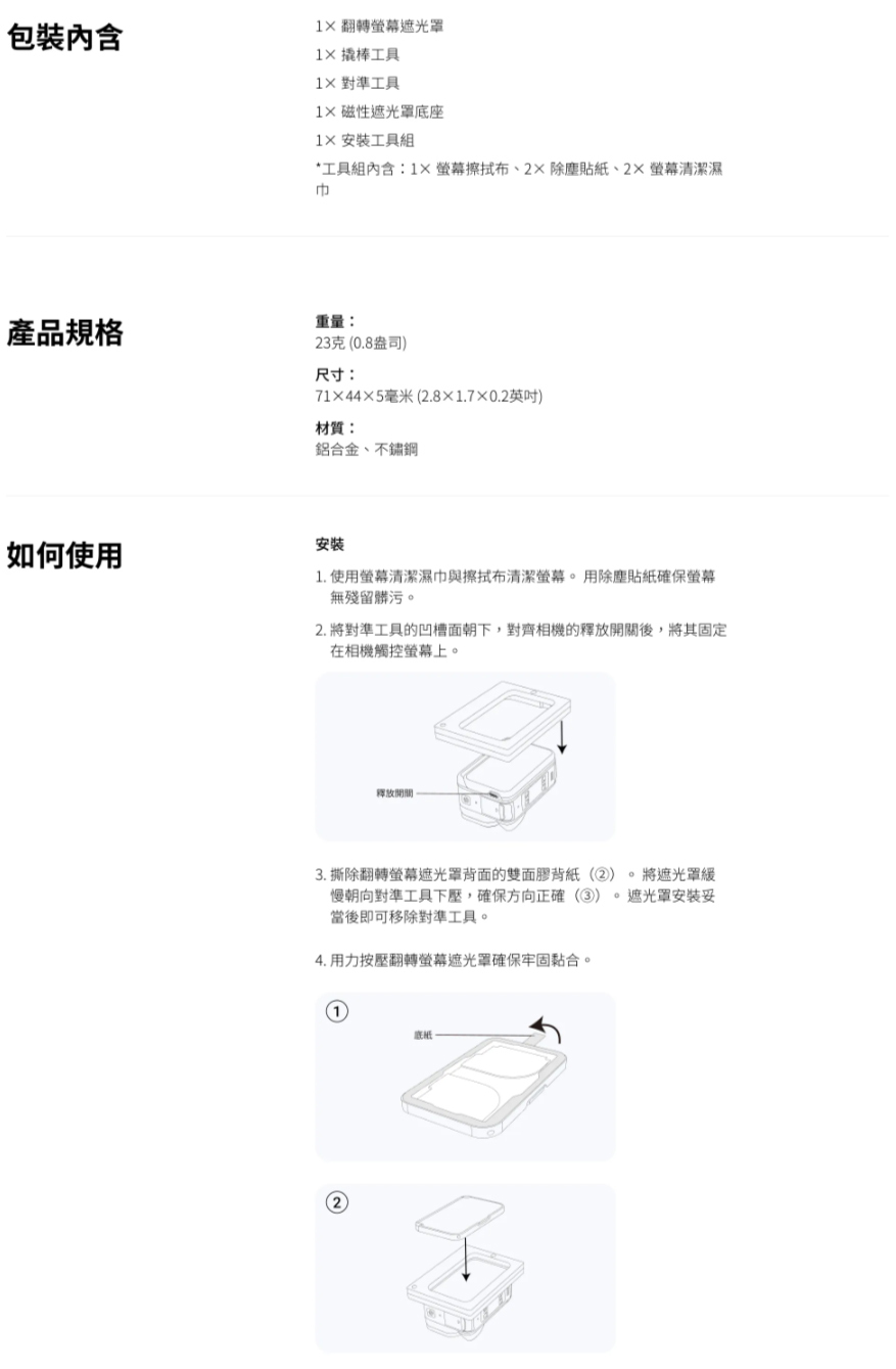 ▶品名:Insta360 Ace Pro 2/Ace Pro 翻轉螢幕遮光罩