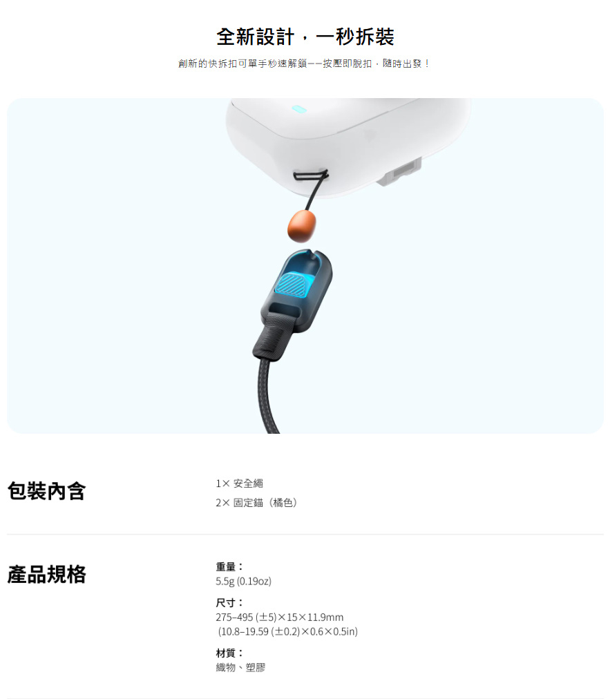 ▶品名:Insta360 GO Ultra 快拆安全繩 原廠公司貨