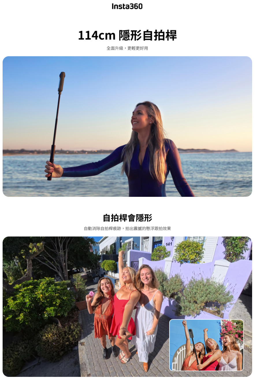 .自拍桿會隱形,自動消除自拍桿痕跡拍出震撼的懸浮跟拍效果。