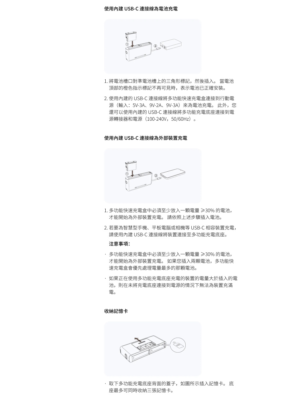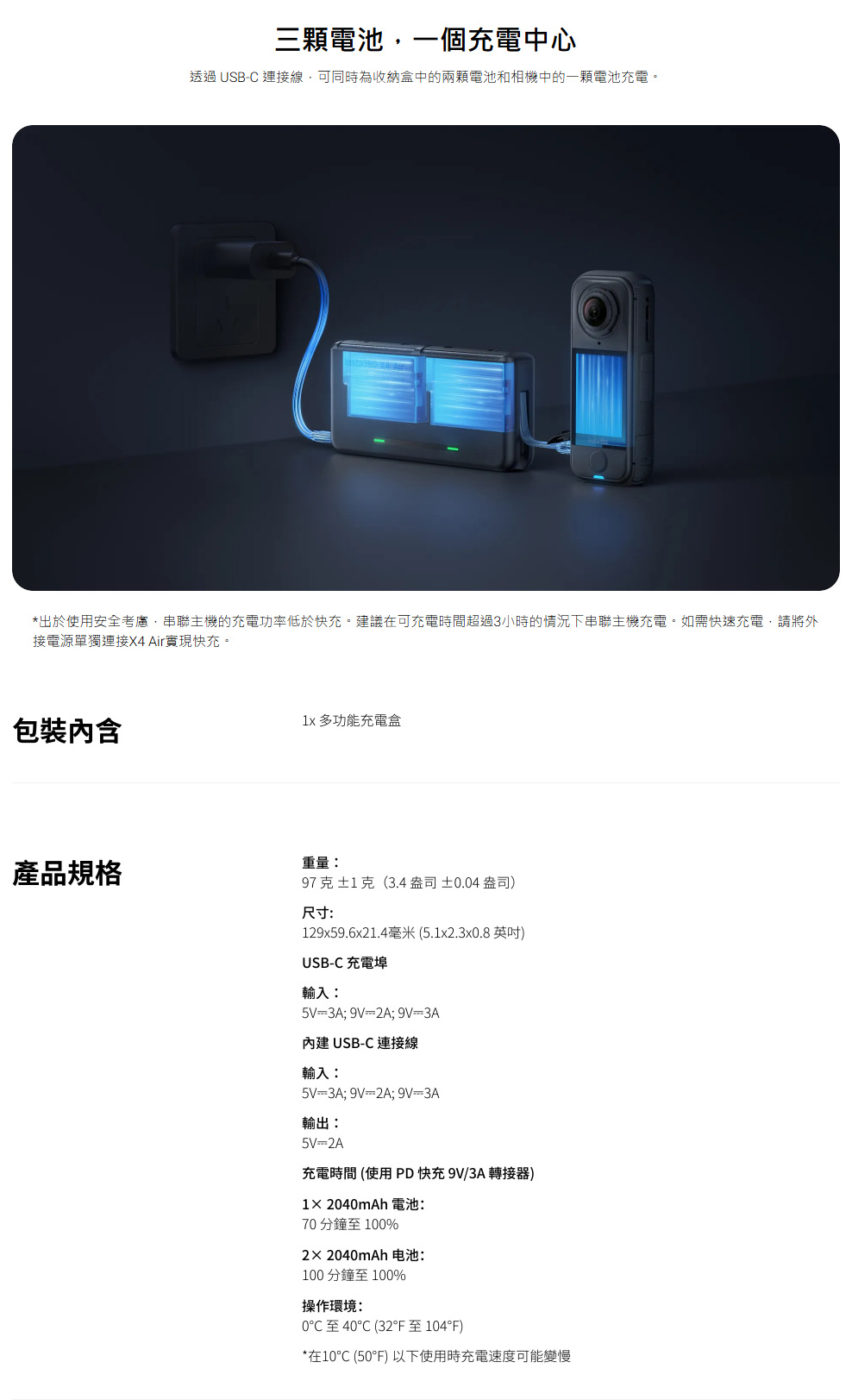 .可同時為盒內的兩顆電池和相機內的一顆電池充電。