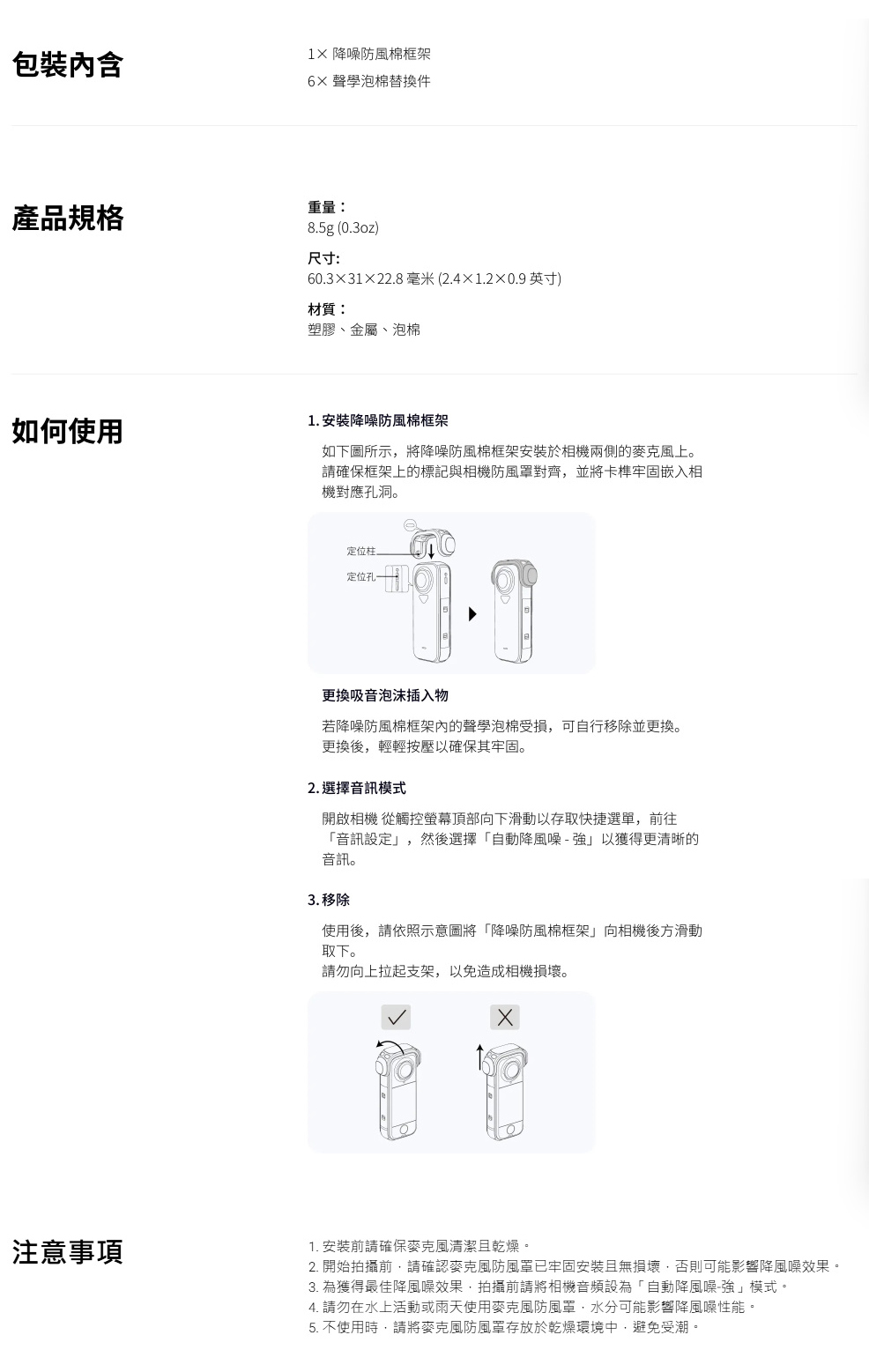 ▶品名:Insta360 X4 Air 防風罩 原廠公司貨