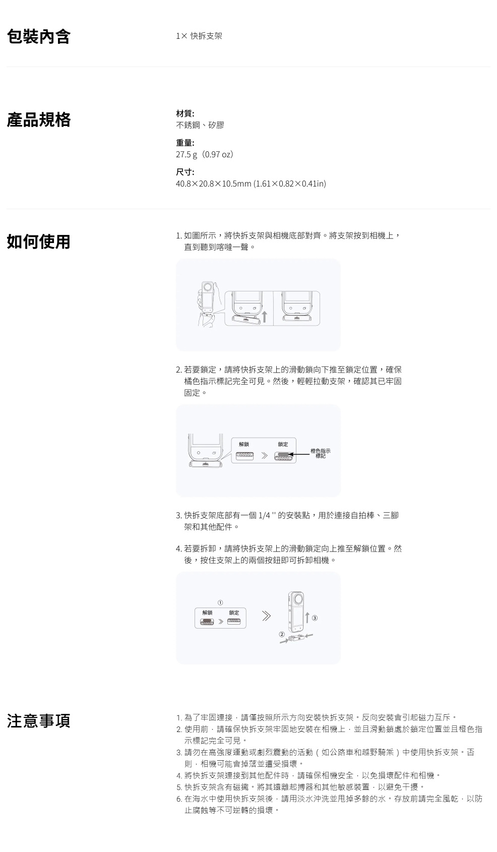 ▶品名:Insta360 X5/X4 Air 快拆支架