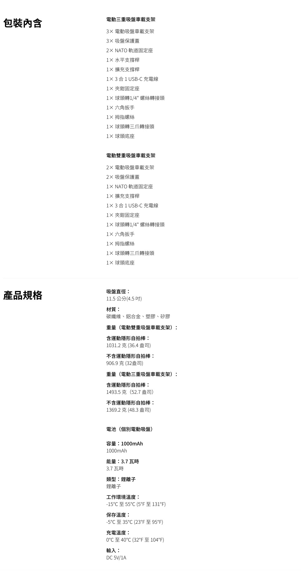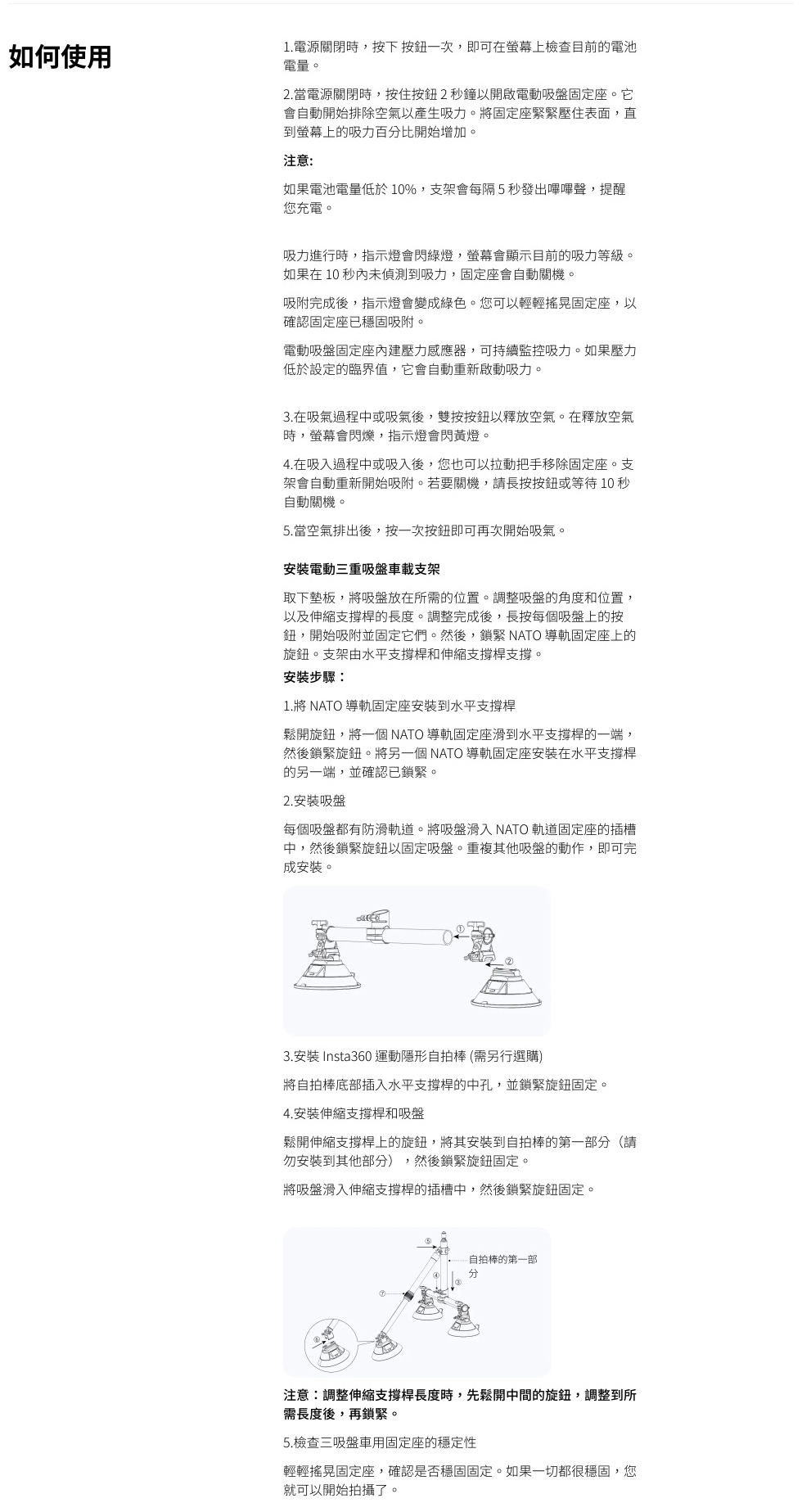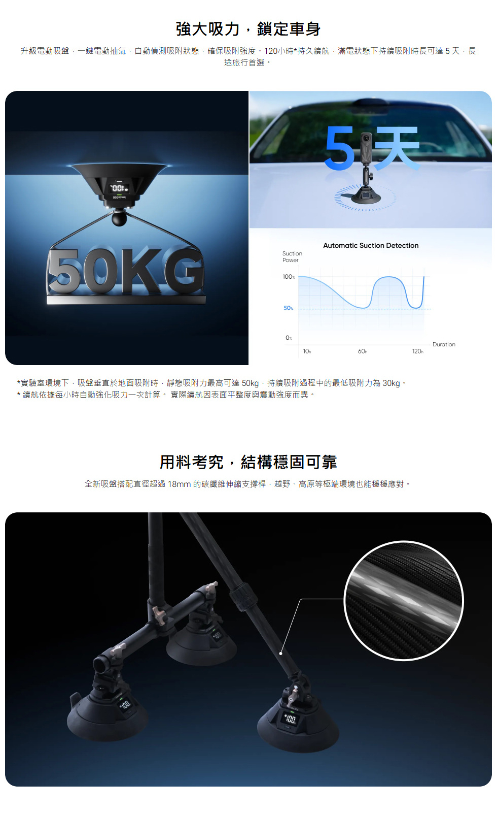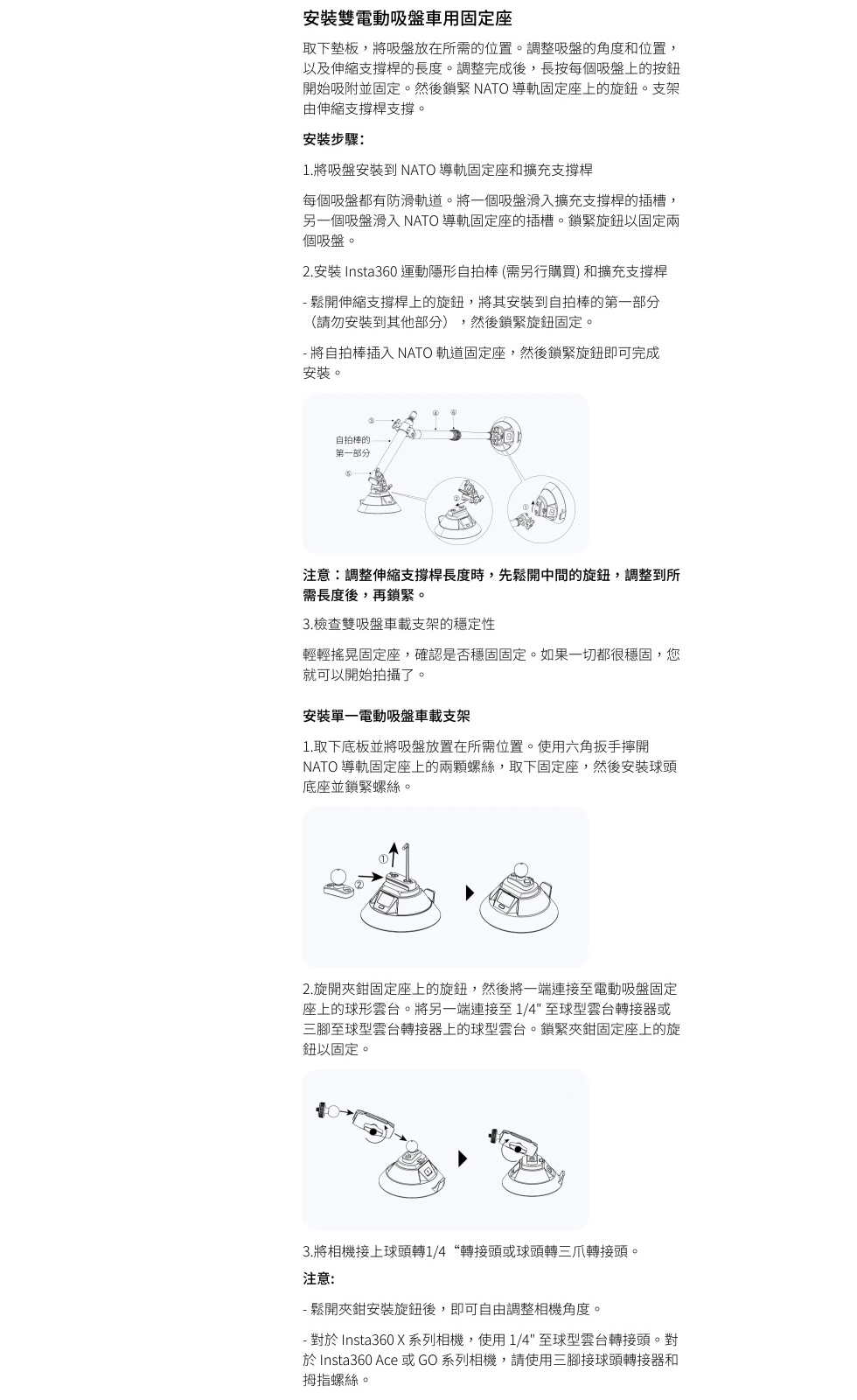 ▶品名:Insta360 電動雙/三吸盤車用支架 原廠公司貨