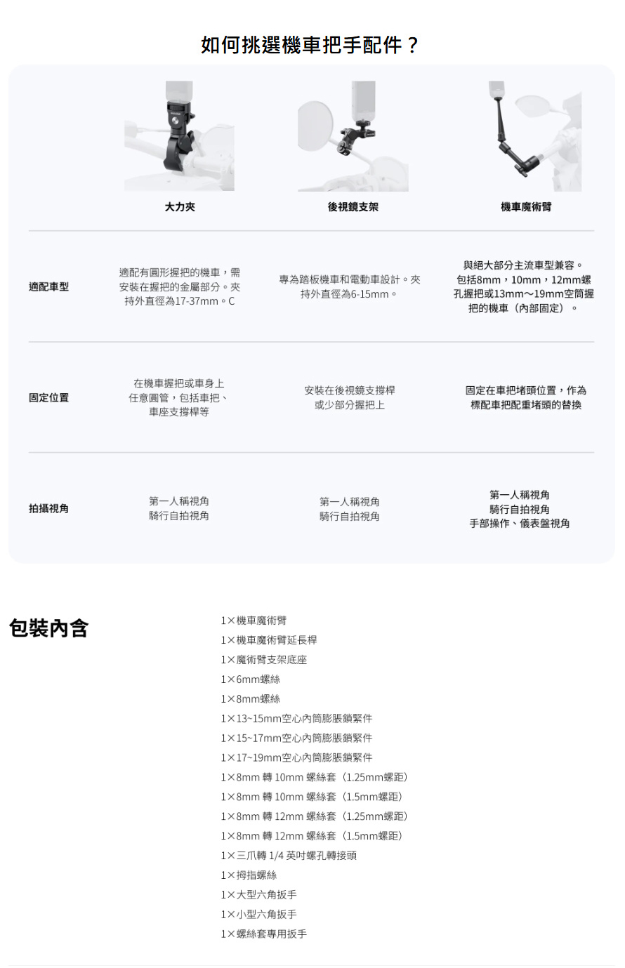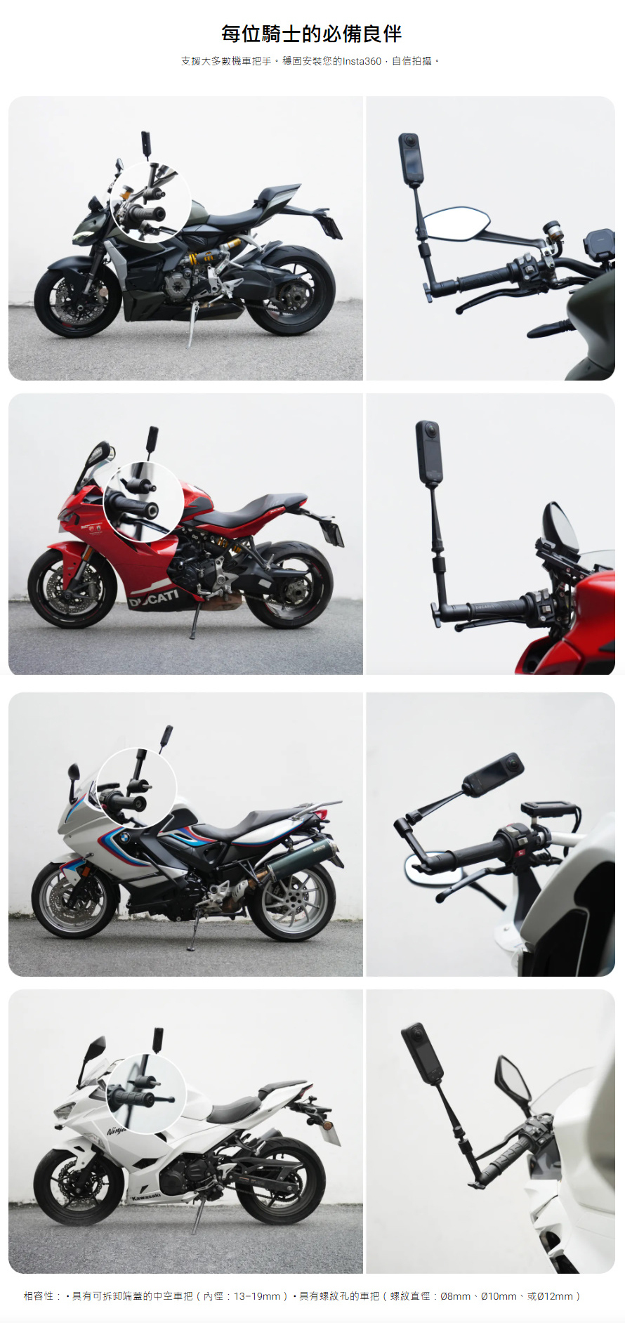 ▶高兼容性,支持所有主流機車把安裝,包括仿賽摩托、街車等,跨車型通用。
