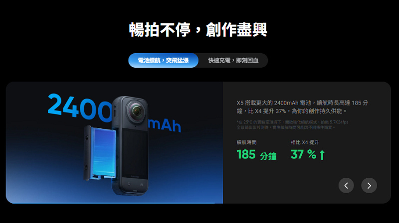 ▶全新2400mAh電池185分鐘續航