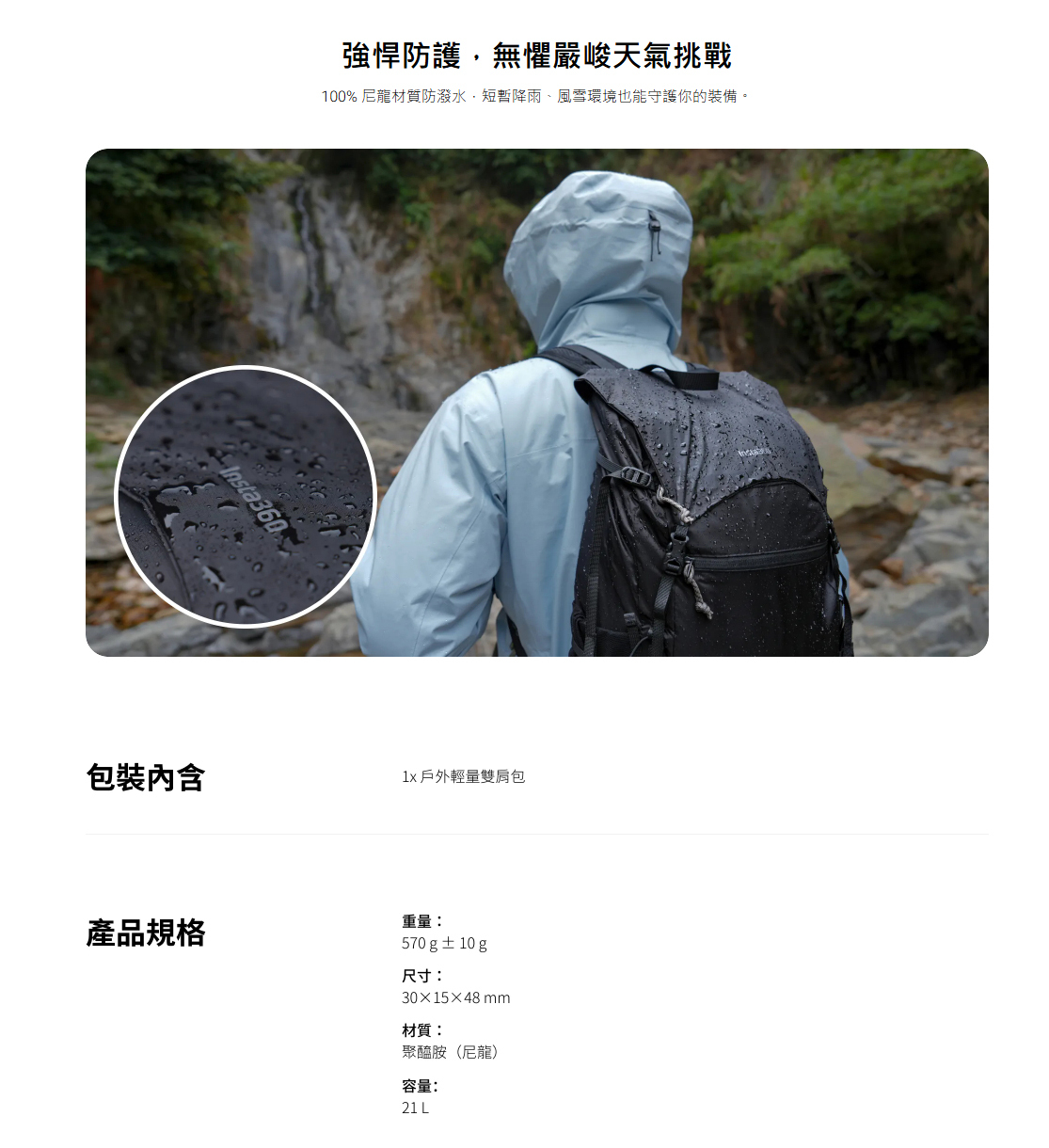 ▶21L 大容量,可容納 14 吋筆電與短途旅行裝備