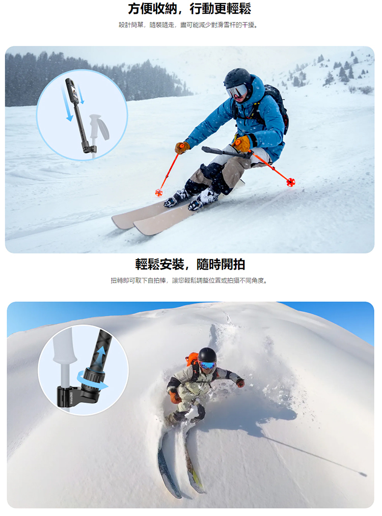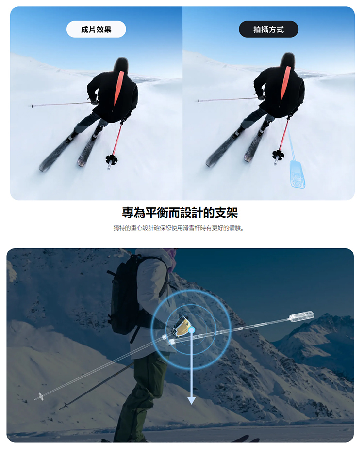 ▶完全解放雙手,滑雪時再也不用尷尬地使用自拍棒了