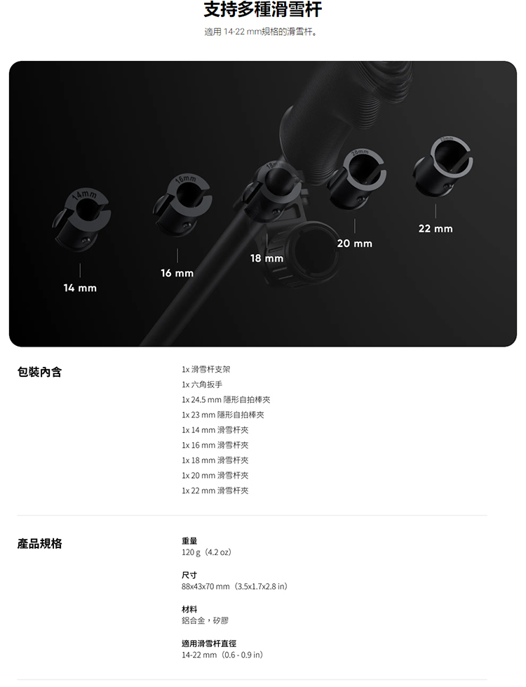 ▶適用70 cm、114 cm以及運動隱形自拍棒