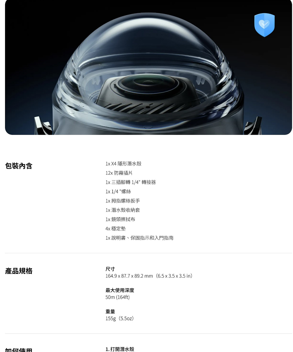 ▶品名:Insta360 X4 隱形潛水殼