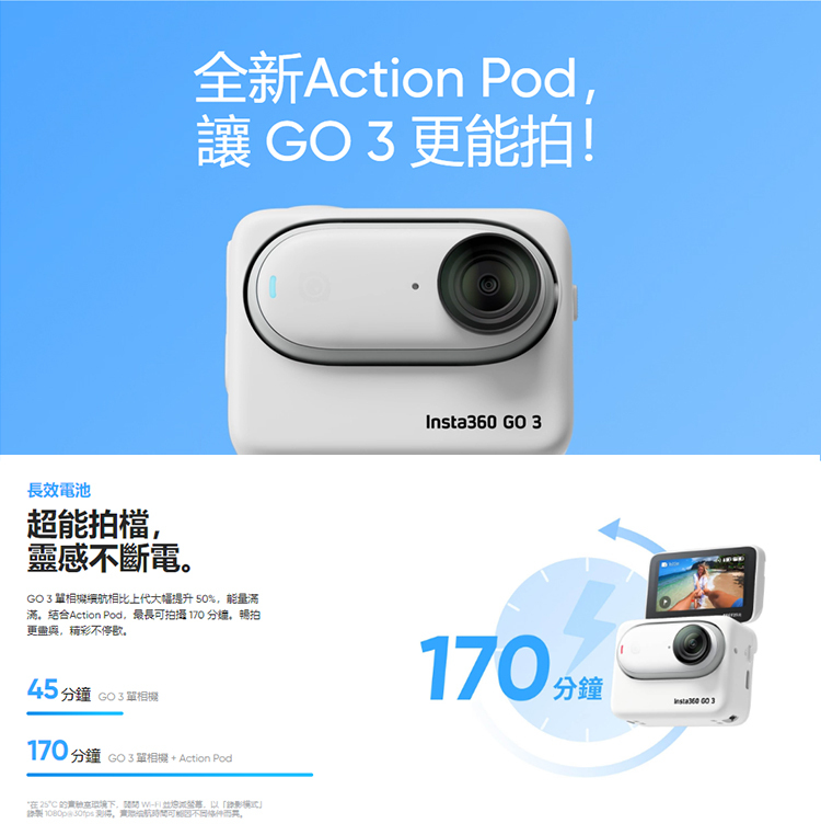 搭配Action Pod,電池續航時間長達145分鐘