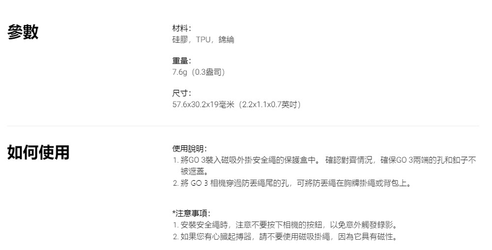 ▶很容易連接到磁吸吊墜的繩索上,並有一個專門設計的保護盒,以保護GO 3S /GO 3的安全