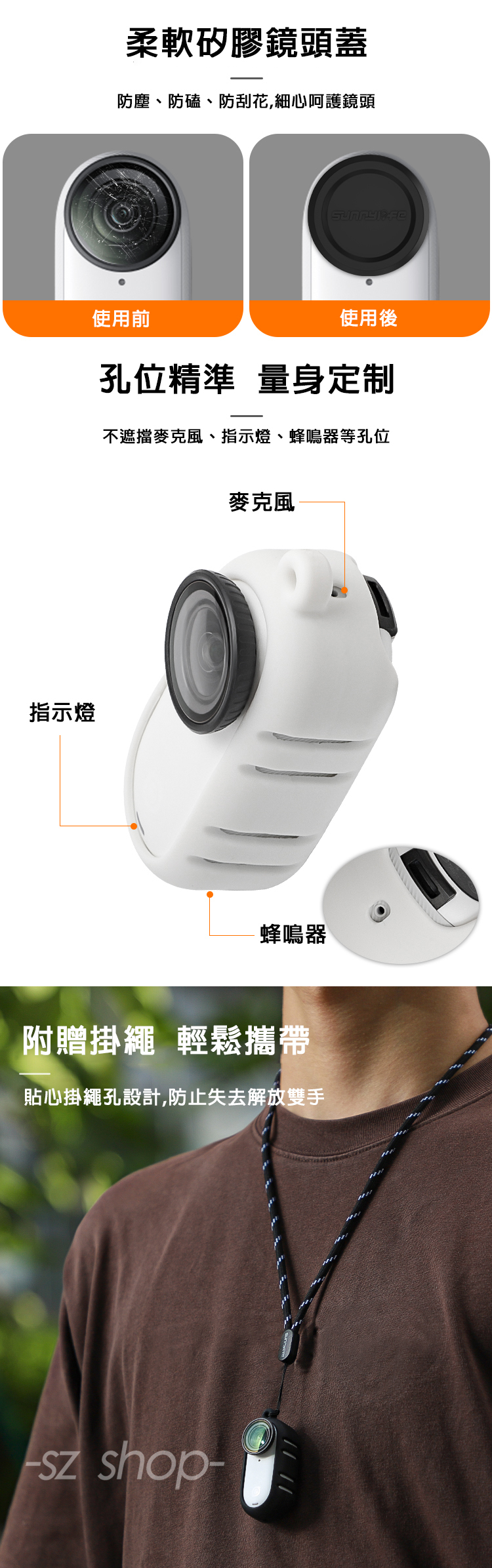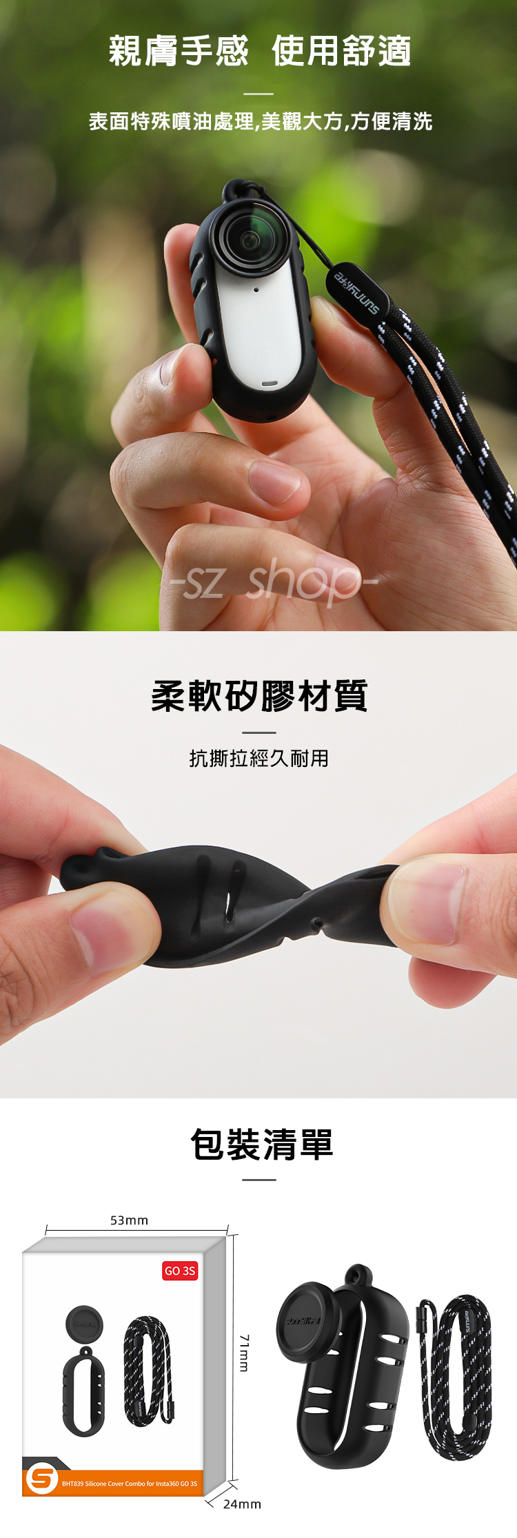 ▶品名:Insta360 GO 3S 散熱矽膠套+鏡頭蓋+掛繩組