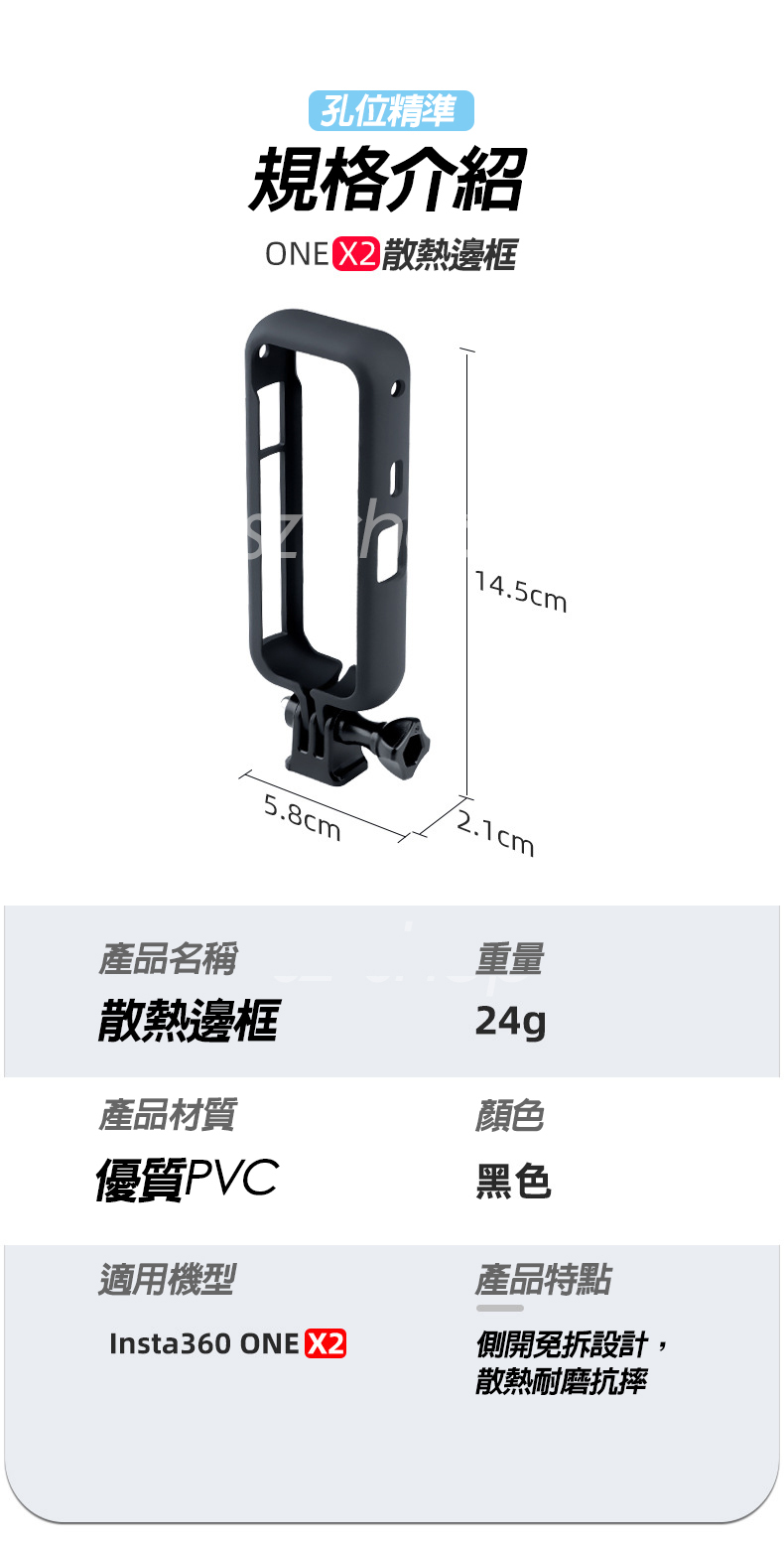 保護籠設計有冷靴座和 1/4 英寸螺紋孔用於擴展,可替代 Insta360 ONE X2。