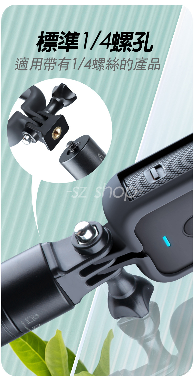 ▶底部動作相機支架和 1/4 英寸接口可快速安裝在三腳架和頭盔、自行車等安裝適配器上
