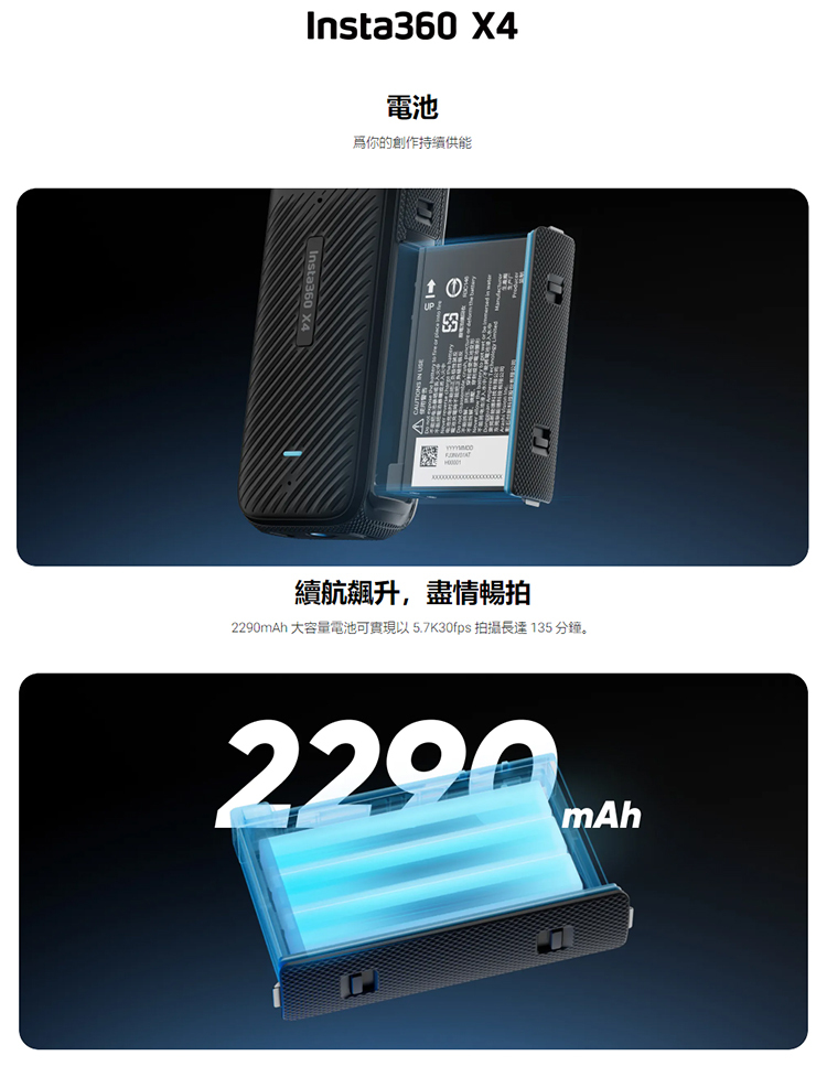 ▶電池續航力延長至 67%,可 5.7K30fps 拍攝 135 分鐘