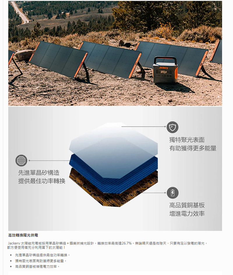 ▶有效捕捉和轉換太陽能充電,最高達 26.7%的高轉換效率