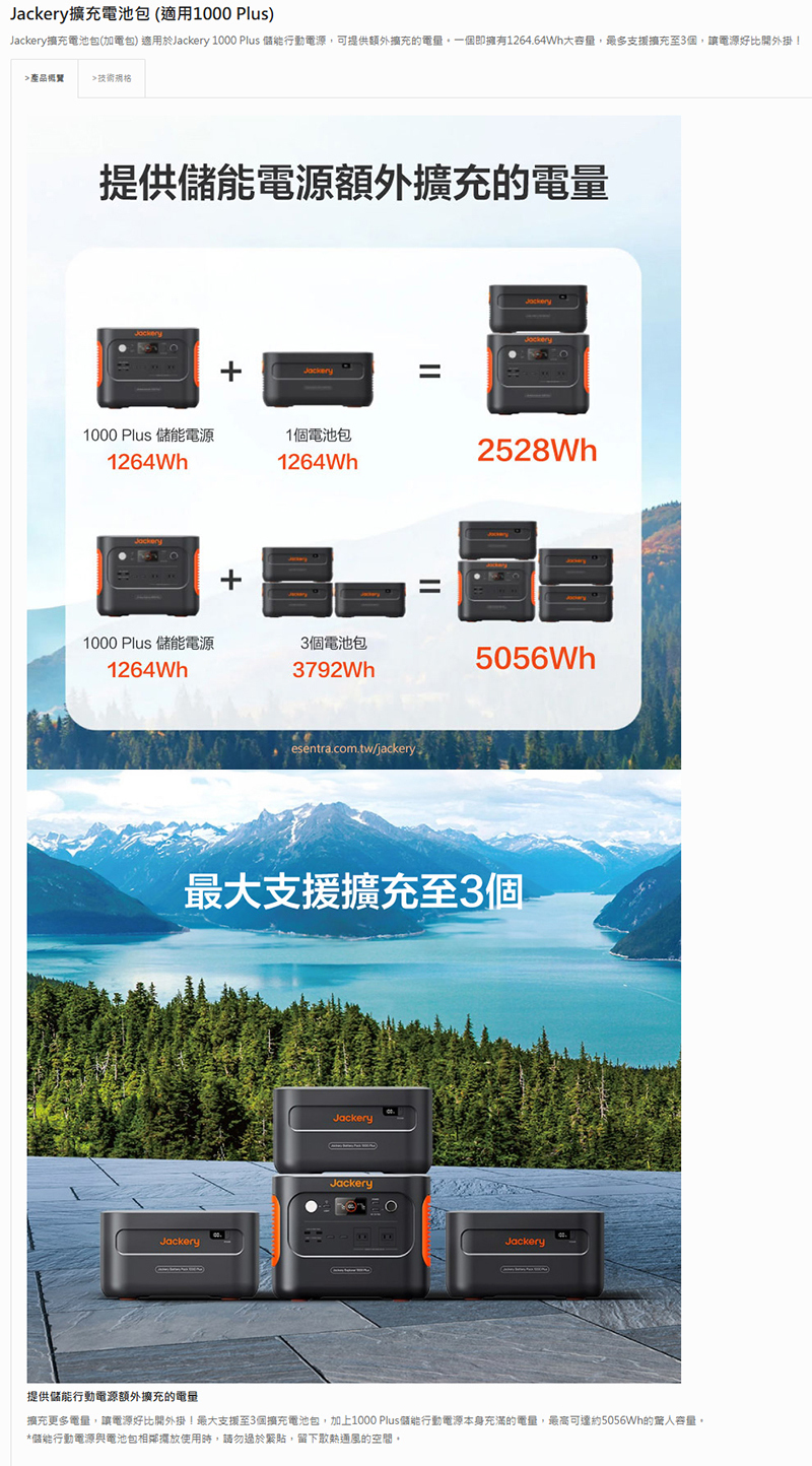 .提供Jackery 1000 Plus儲能電源額外擴充的電量。