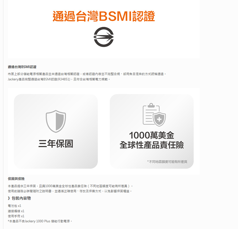 .本產品不含Jackery 1000 Plus 儲能行動電源。