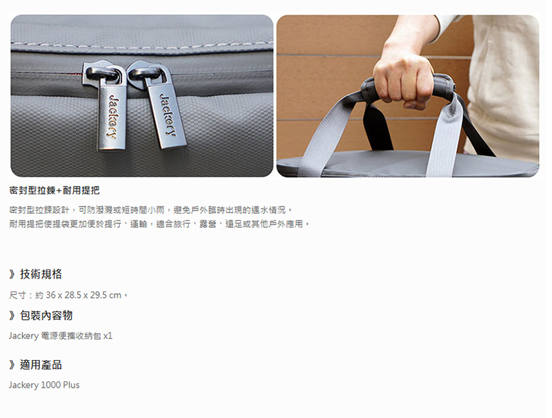▶密封型拉鍊,可防潑濺或短時間小雨。