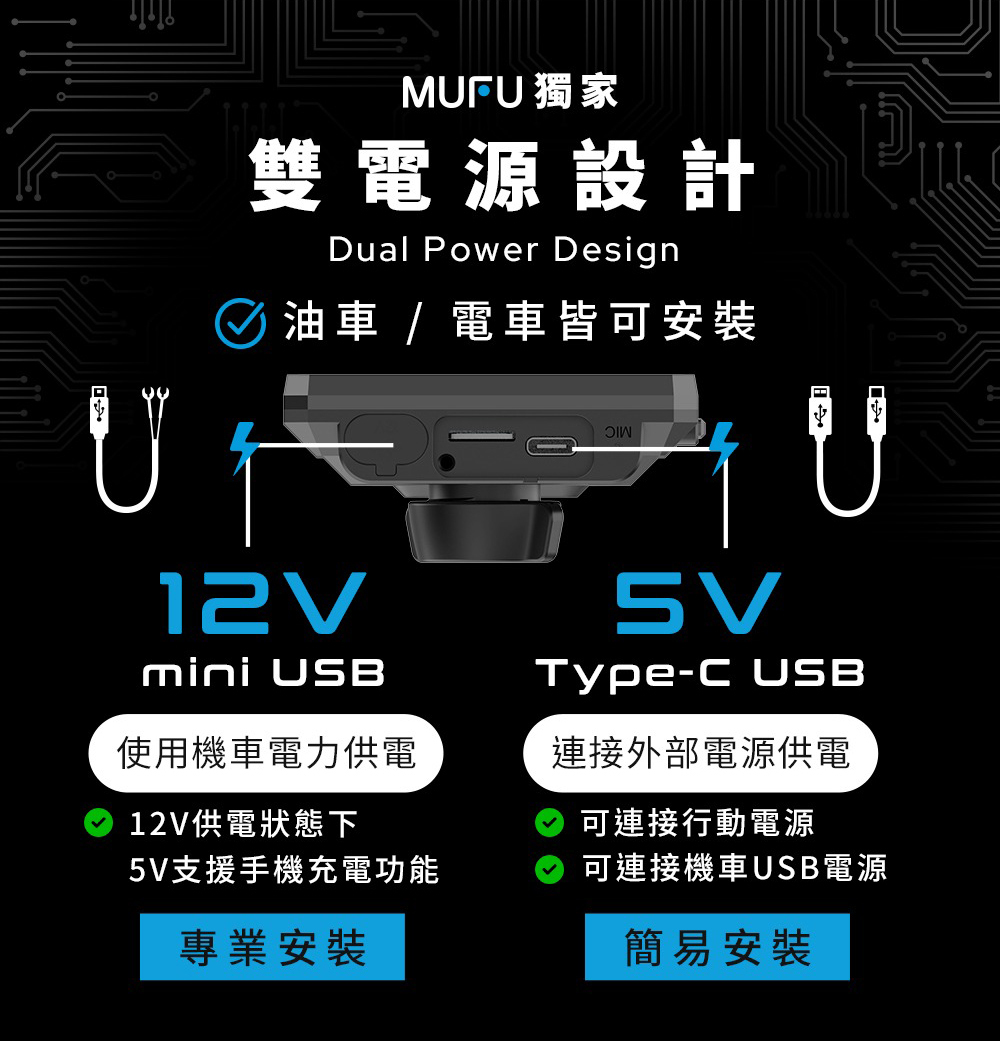 ▶mini USB ACC電源線適用MUFU汽機車數位投屏機MS1000,需由機車行師傅專業牽線ACC端安裝在機車電瓶,提供12V供電。