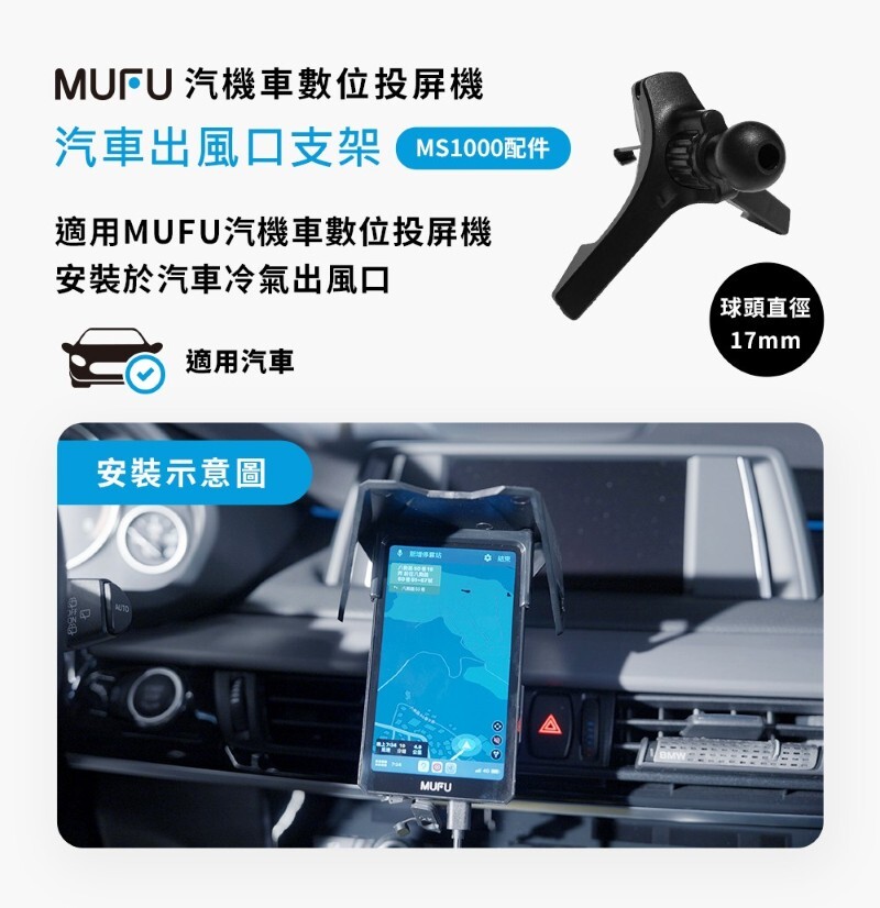 汽車出風口支架適用MUFU汽機車數位投屏機MS1000,可自行安裝於汽車冷氣出風口。