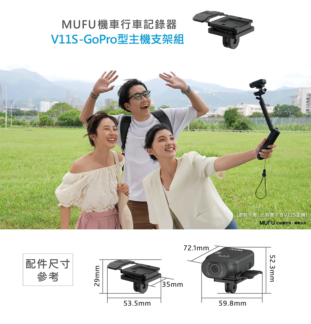 ◉MUFU V11S機車行車記錄器配件,V11S GoPro型主機支架組