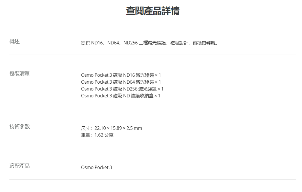 ▶提供 ND16、ND64、ND256 三檔減光濾鏡