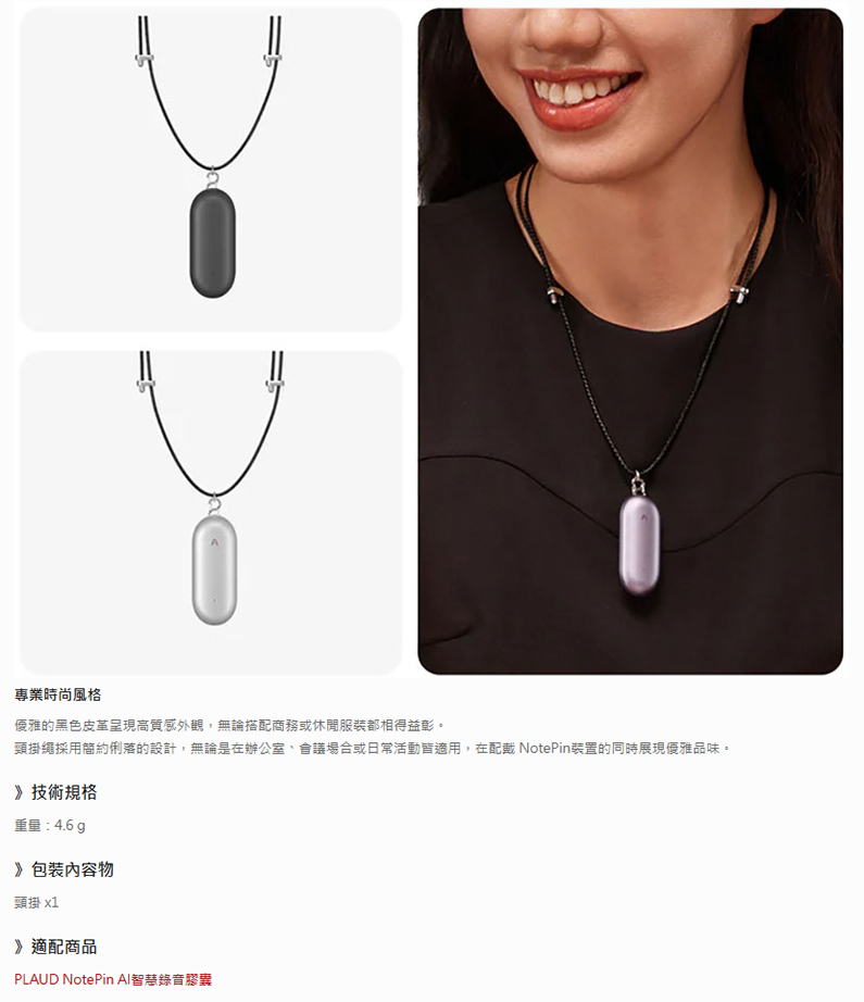 ▶為PLAUD NotePin AI智慧錄音膠囊的專用配件。