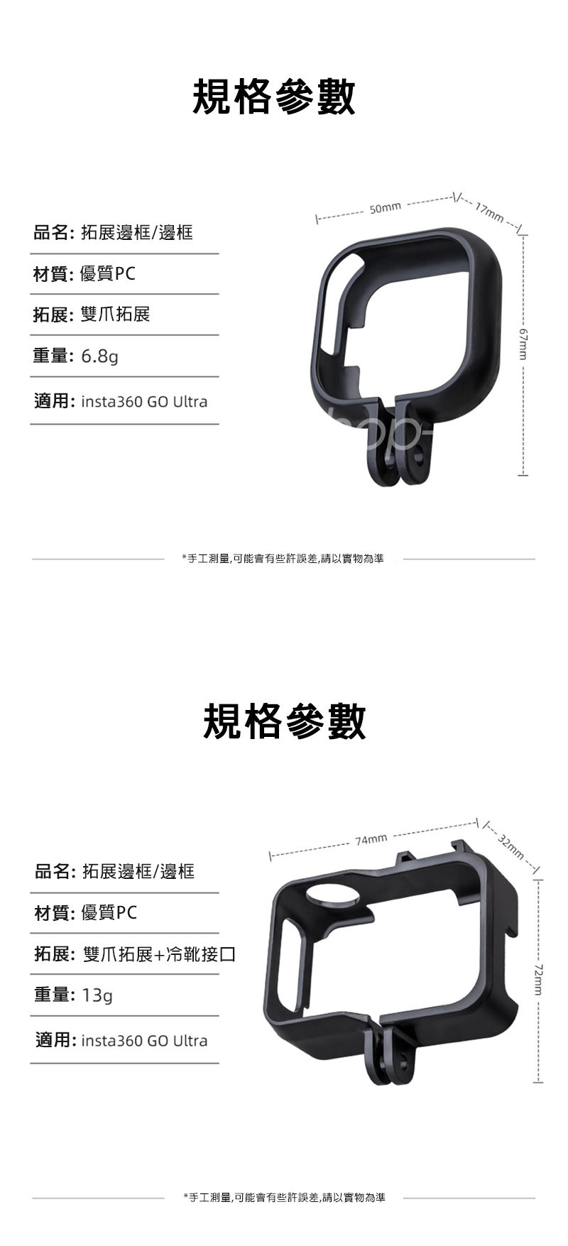 ▶品名:Insta360 GO Ultra 冷靴拓展邊框