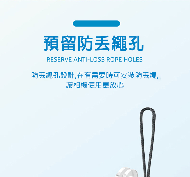▶防丟手繩設計,有需要可安裝防丟繩