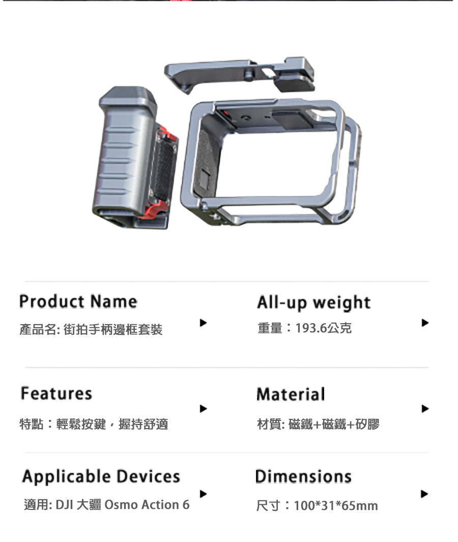 ▶品名:DJI Action 6 鋁合金街拍套裝