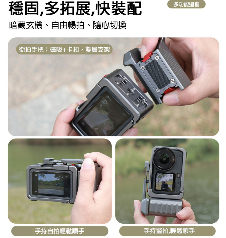 ▶磁吸街拍手把,可拆卸單獨使用邊框