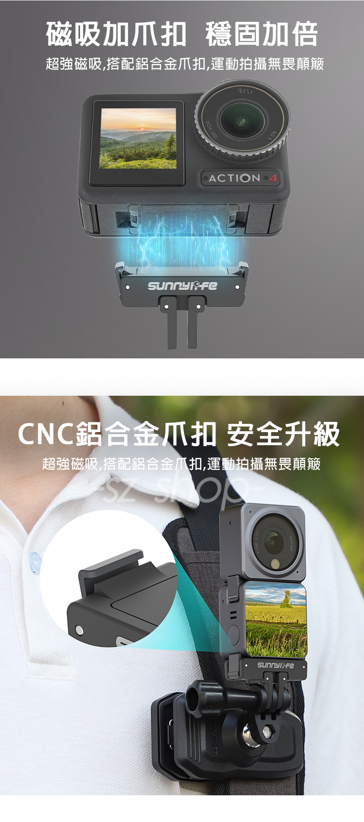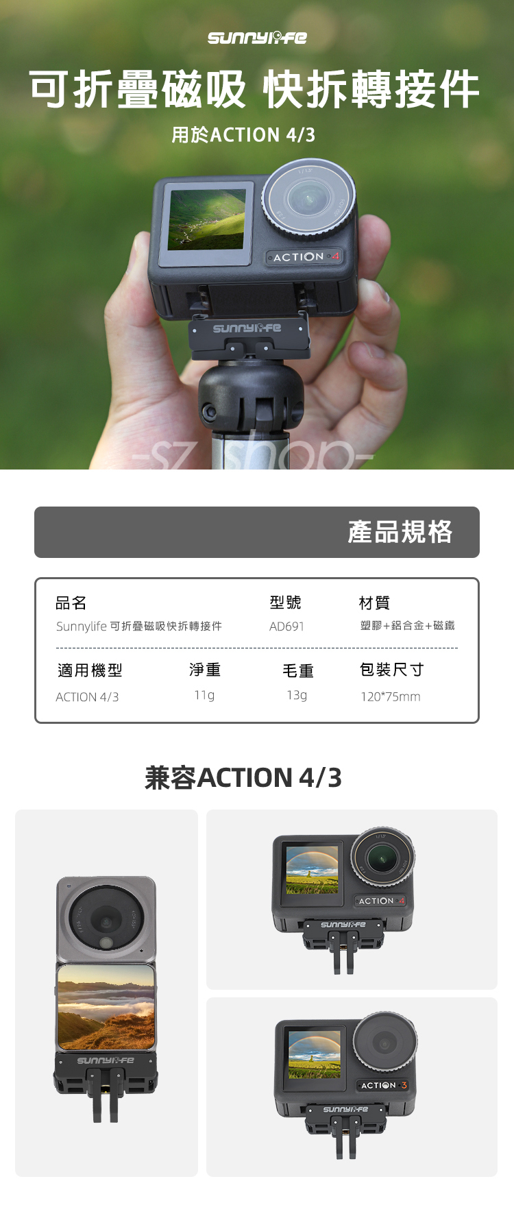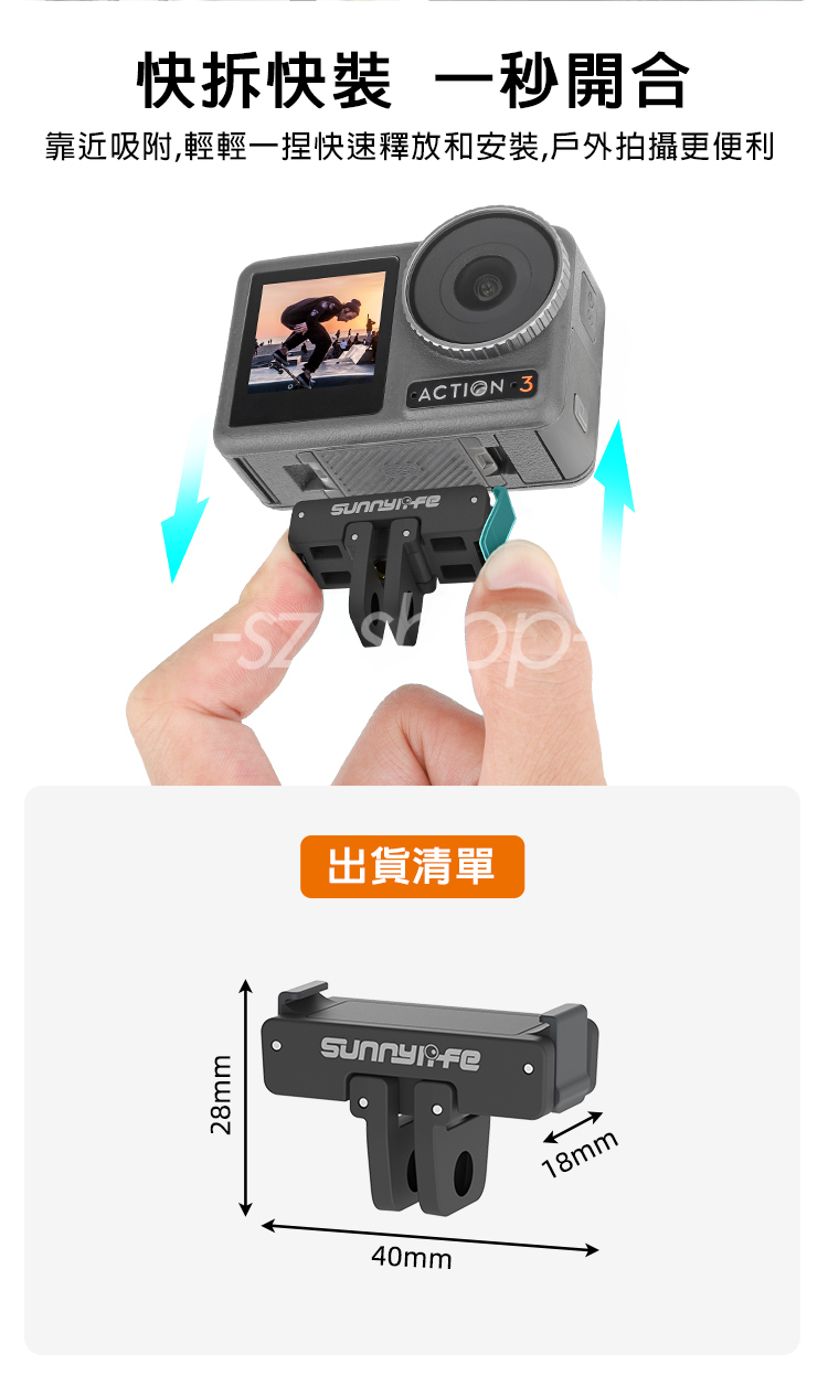 ▶品名:DJI Action 4 / 3 磁吸快拆支架