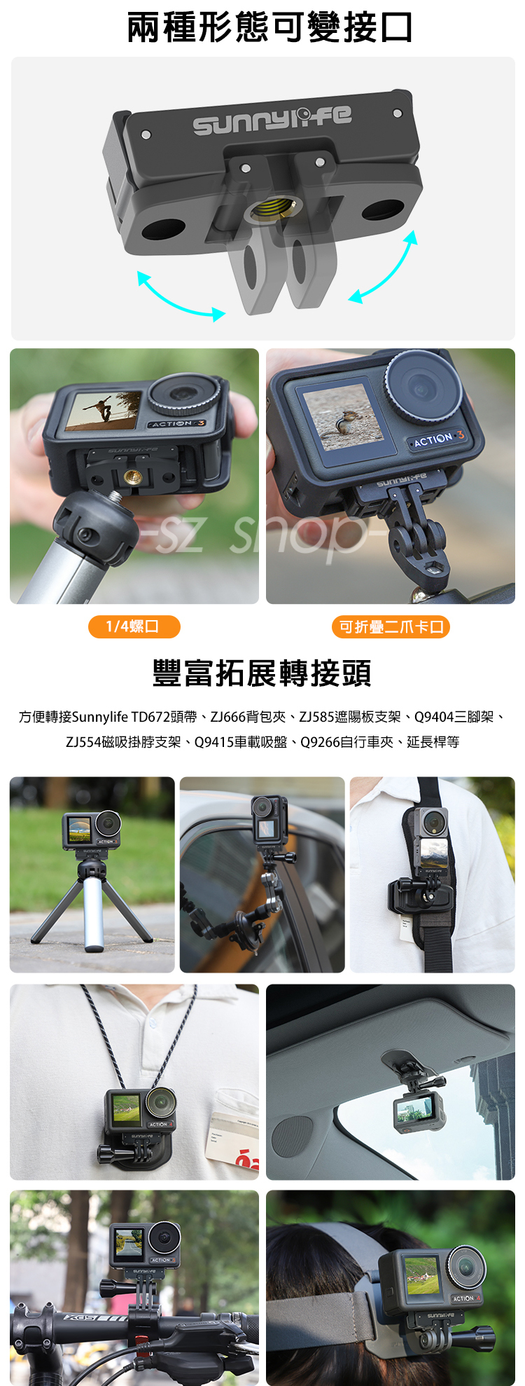 ▶適用機型:DJI Action 4 / 3 磁吸快拆支架