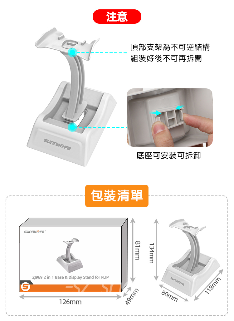 ▶底部支架為不可逆結構;底座可安裝可拆卸