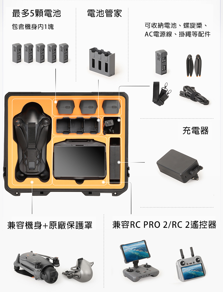 .大容量收納、可收納RC PRO 2/RC 2遙控器 等配件