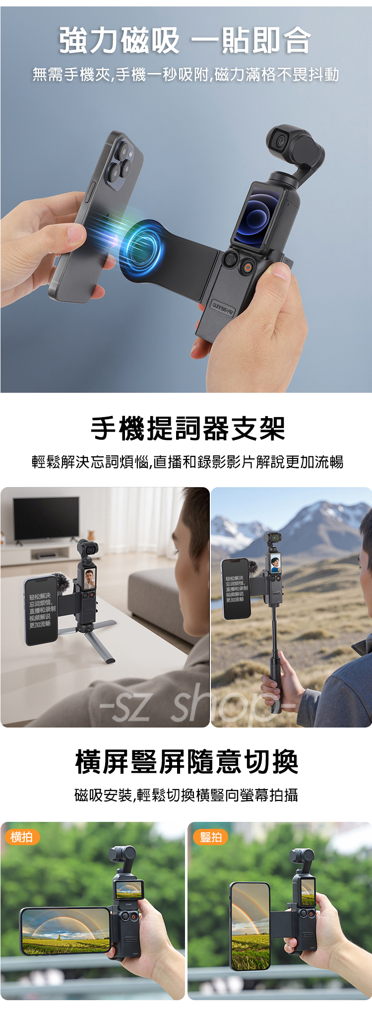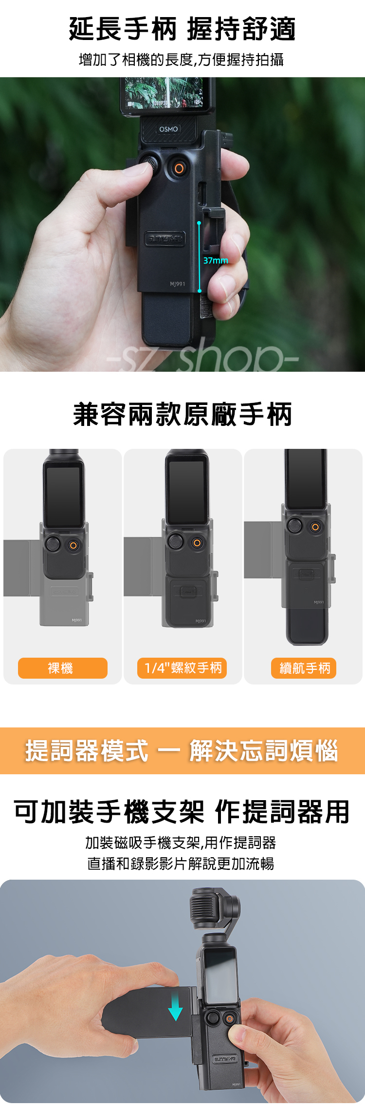 .兼容裸機、原廠續航手柄、1/4螺紋手柄