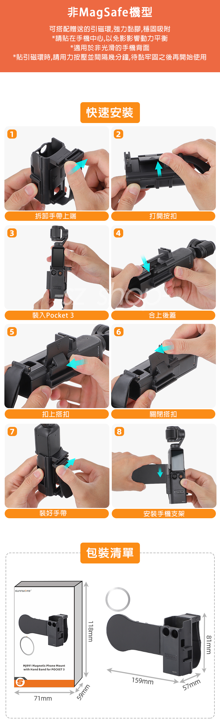 .POCKET 3 磁吸拓展手機支架+防掉手帶(附引磁片)